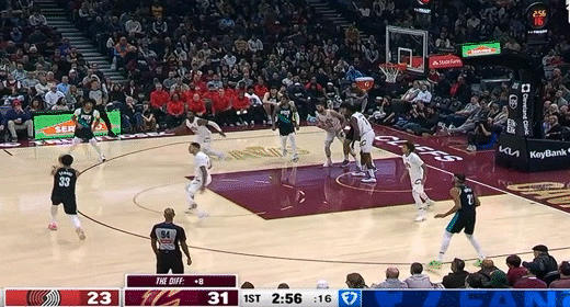 第二节骑士杰伦-泰森拿下6分,开拓者阿夫迪亚拿下12分,半场结束骑士58-68落后开拓者