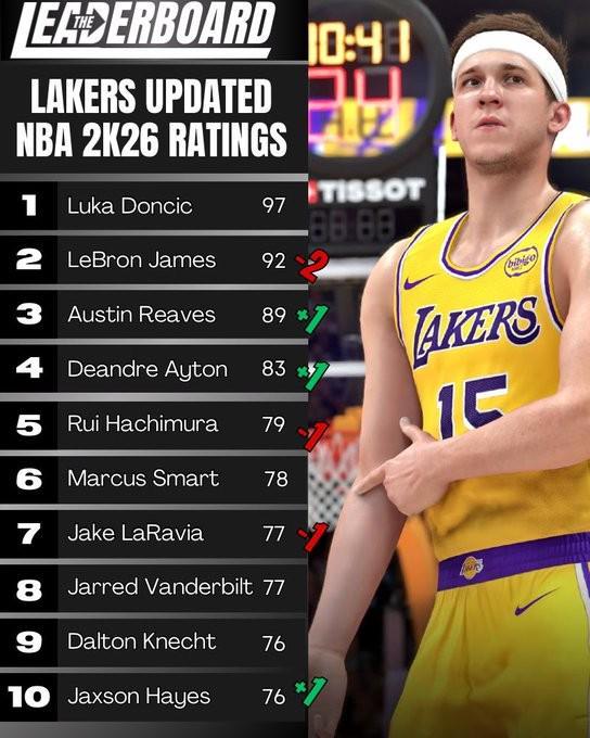 湖人队其他球员中,东契奇保持97分仍为全队最高,里夫斯和艾顿各加1分分别为89和83分。八村垒和拉拉维亚各降一分,杰克逊-海耶斯涨了1分。
